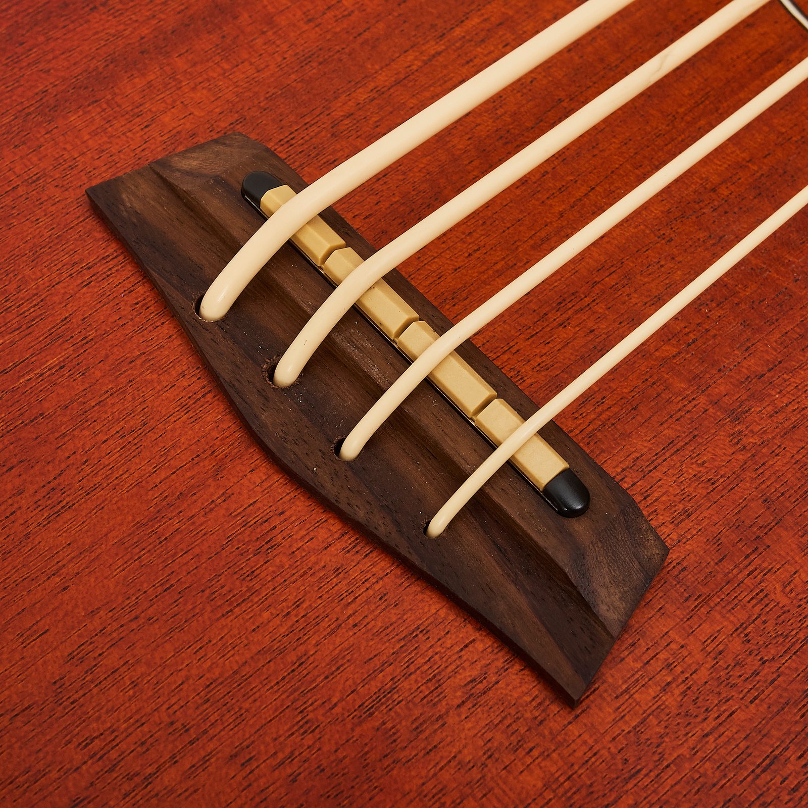 Su diseño ergonómico ofrece comodidad en sesiones largas, mientras que el mástil ancho y estable permite ejecutar líneas de bajo con precisión. Las cuerdas tipo polymer bass proporcionan una sensación suave y un sustain equilibrado, manteniendo al mismo tiempo una afinación estable.