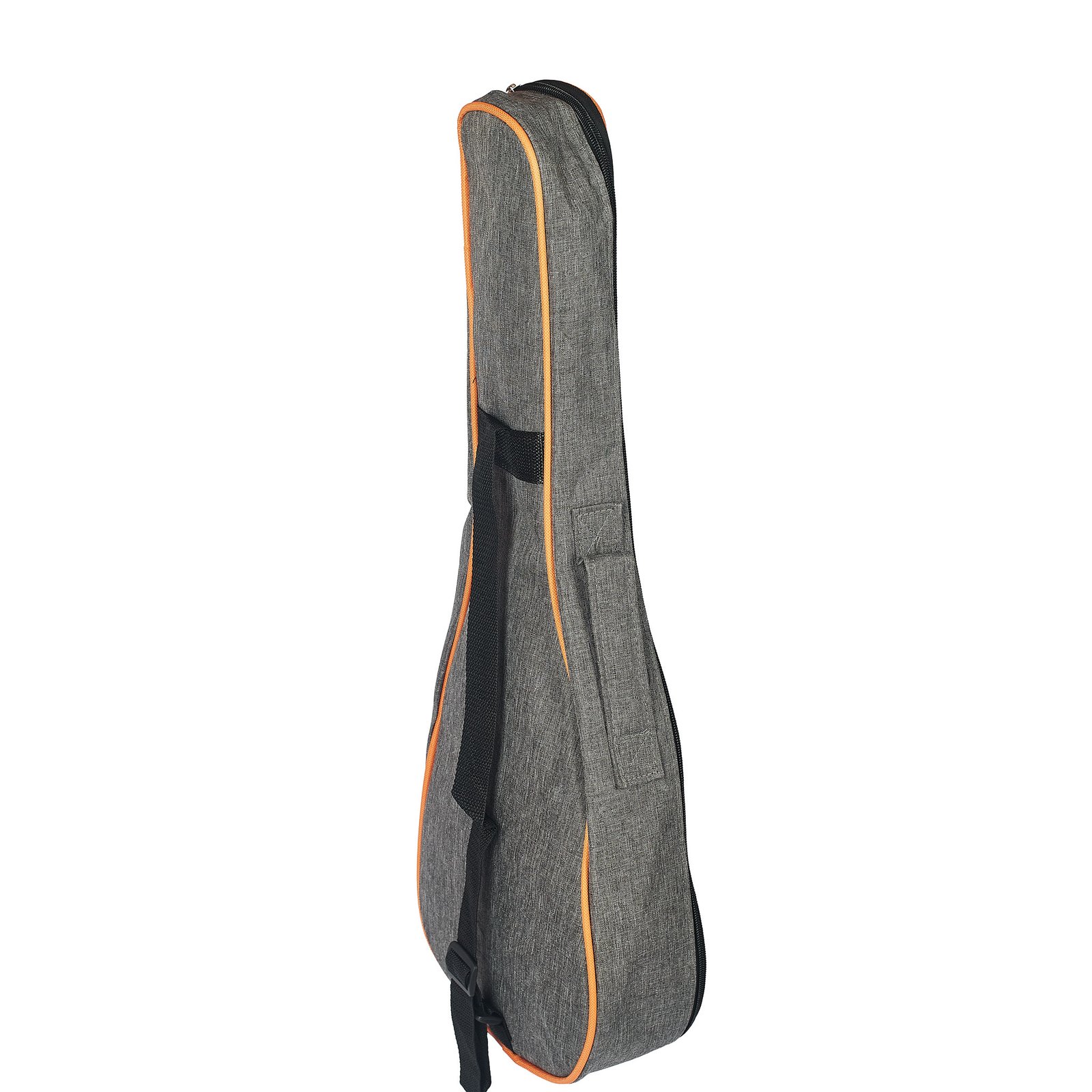 El acabado textil gris con ribetes decorativos le da una apariencia moderna y elegante, mientras que su bolsillo frontal amplio permite guardar accesorios como afinadores, cejillas, partituras pequeñas o estuches de cuerdas. Es una opción confiable, cómoda y estética para quienes buscan un estuche liviano pero resistente para proteger su instrumento en todo momento.