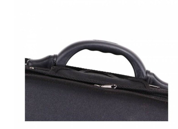 El interior está completamente forrado en felpa suave para evitar rayones y mejorar la sujeción del instrumento. Integra espacio para accesorios y sujetadores seguros para el arco. En el exterior incorpora un bolsillo amplio, asas reforzadas y correas tipo morral para facilitar su transporte diario.